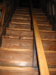 | 勾配のきつい宇土櫓の階段 横手五郎が首に掛けて運んだと言われた首掛石 |